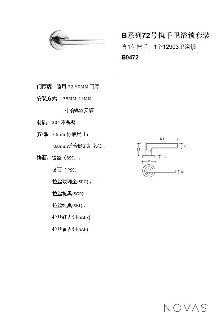 B係列72號(hào)執手衛浴鎖套裝