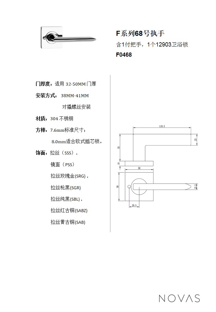 含(hán)1付把(bǎ)手,1個12903衛浴鎖