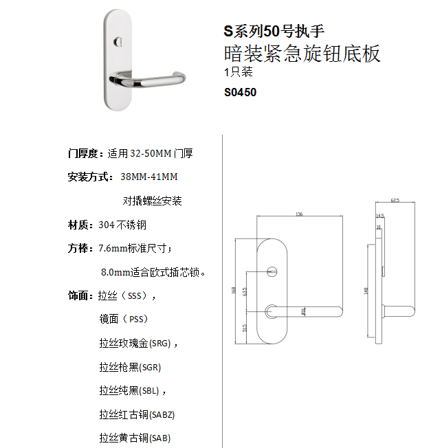 S係列50號執手 暗裝緊急旋鈕底板