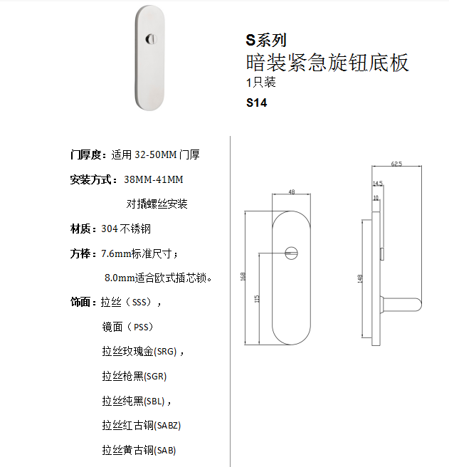 S係列 暗裝緊急旋鈕(niǔ)底板(bǎn)