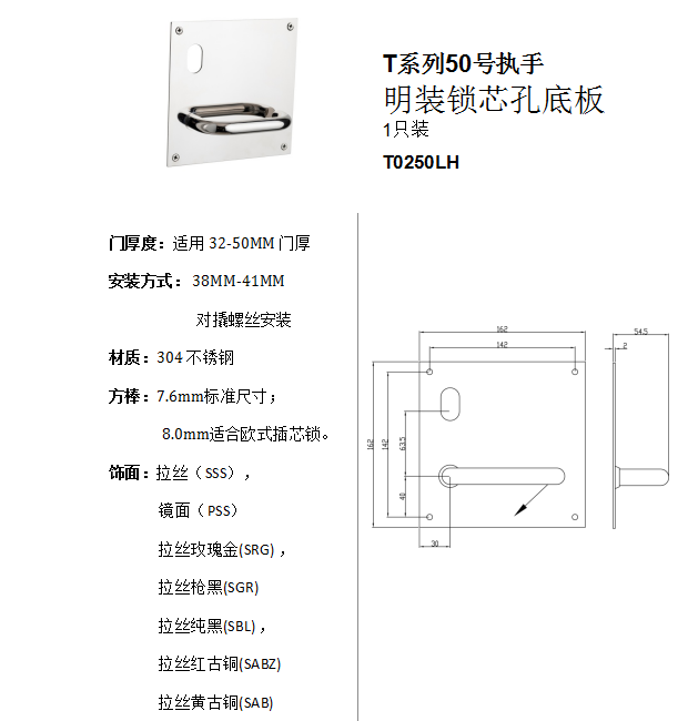 T係列50號執手 明裝鎖芯孔底板