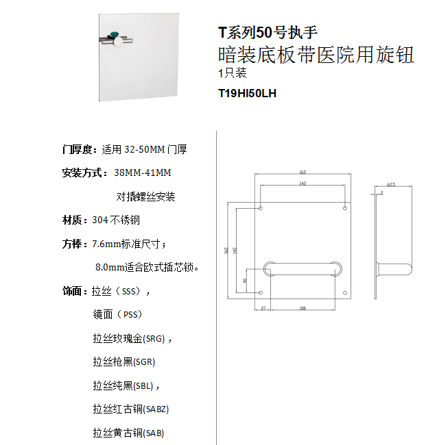 T係列50號執手 暗裝底板帶醫院用旋鈕