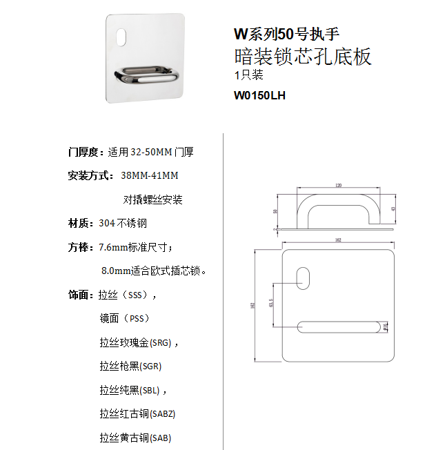 W係列(liè)50號執手 暗裝鎖(suǒ)芯孔底板