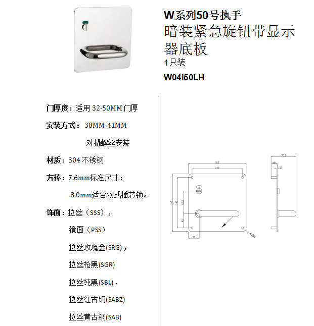 W係列50號執手(shǒu) 暗裝緊急旋鈕帶顯示器底板