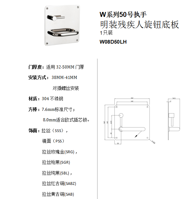 W係(xì)列50號執(zhí)手 明裝殘疾人旋鈕底板