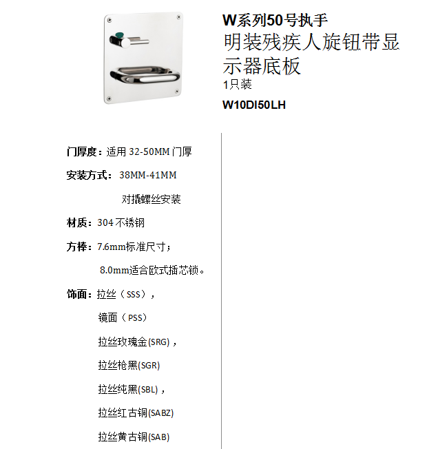 W係列50號執手 明裝殘疾(jí)人旋鈕帶顯示器底板