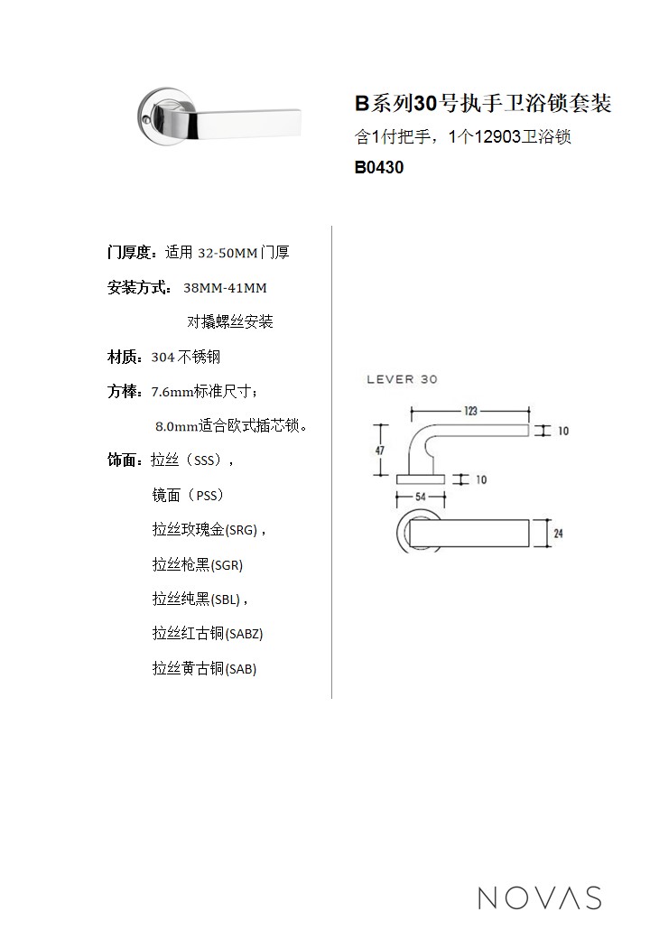 B係列30號執手衛浴鎖套裝